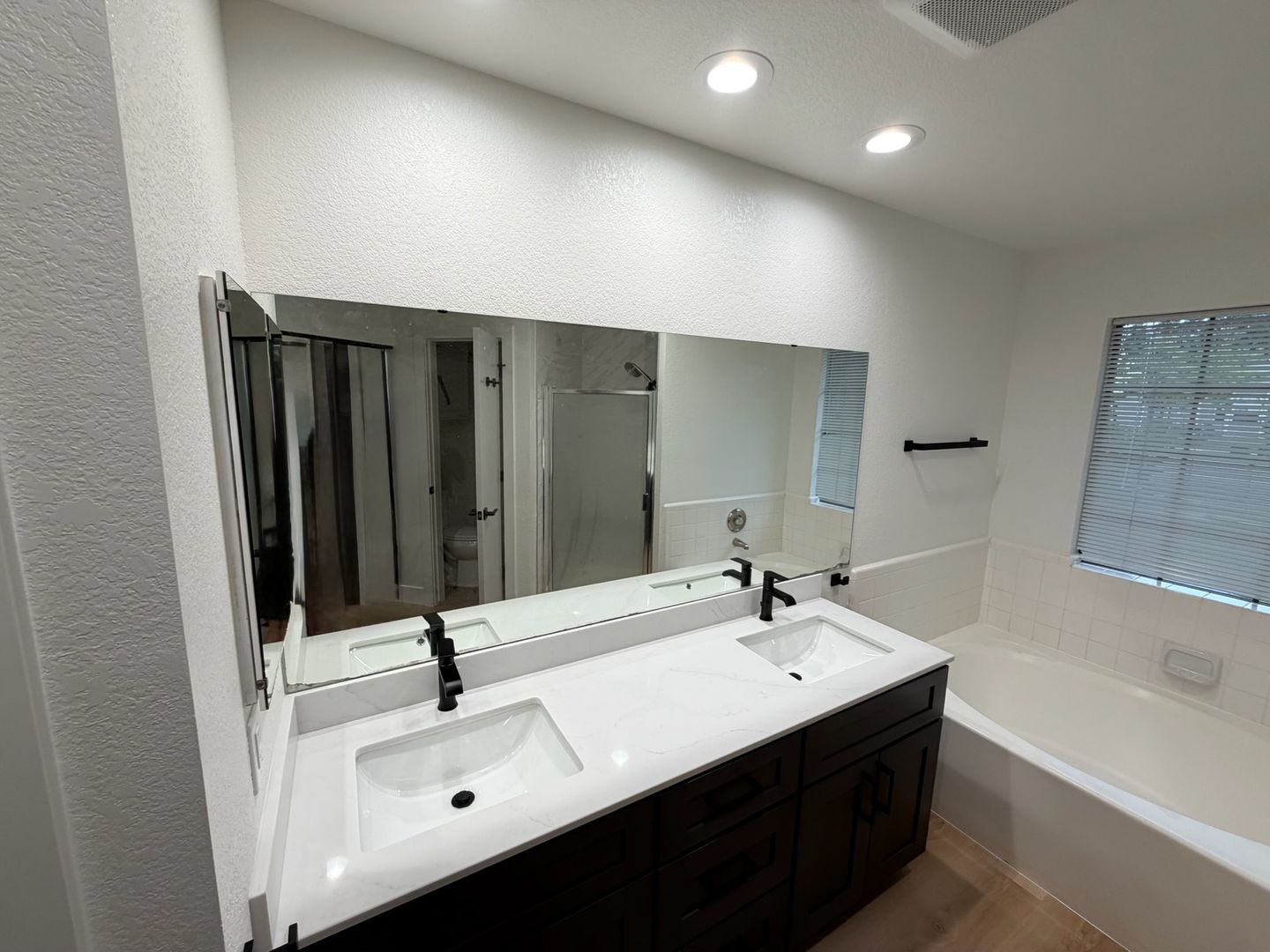 Both bathrooms have been fully updated with new recessed lighting, sinks, and modern vanities, offering a clean, polished finish.